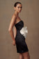 The BERNADETTE Strapless Rose Mini Dress presents a captivating silhouette for your next special occasion. Featuring a strapless design and bodycon silhouette, it offers a sleek and elegant look. Lined for comfort, the dress showcases ruched detailing at the waist for a flattering fit. Delicate flower appliqués add a romantic touch, while a side zip ensures easy wear. Elevate your ensemble with the Bernadette, epitomising timeless charm and sophistication.