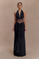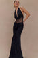 The BONNIE Slinky And Lace Maxi Dress is an elevated essential designed for elegant ease. Featuring a halter neckline and a gathered bust for a flattering fit, this dress is detailed with a delicate lace waist insert that adds texture and intrigue. The gathered skirt drapes effortlessly from the waist, creating movement and softness. Finished with a button and zipper closure and partially lined for comfort, this dress is your go-to for moonlit events, long dinners, and unforgettable entrances