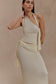 The BOWIE Low Rise Knit Maxi Skirt brings a fresh twist to relaxed elegance. Designed with a mid-rise waistline and comfortable elastic waistband, it features a gathered overlay detail with sleek hardware and a draped side sash for added movement. Cut to a maxi length and left unlined for a soft, fluid feel, this skirt is the perfect foundation for effortless day-to-night styling.