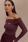 The BRIAH Cut Out Modal Long Sleeve Top is a captivating addition to any stylish wardrobe, effortlessly blending sophistication with a hint of daring. This top features an elegant Bardot neckline and a striking front cutout detail, adding a touch of modern edge to its classic design. With long sleeves and a bodycon fit, it flatters the figure while offering a sleek, elongated silhouette. The bodice is lined for comfort and coverage, while the sleeves remain unlined, maintaining a lightweight feel. Perfect for pairing with tailored trousers, the Briah Top creates a refined yet fashion-forward ensemble ideal for both professional and evening wear.