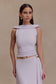 The BRIDGET Slinky Cowl Back Top is all about contrasts—sleek minimalism meets fluid draping. Featuring a high neckline and a fitted bodice, it frames the silhouette with understated polish, while the sleeveless cut adds a modern edge. Turn to reveal the statement: a soft draped cowl back with an open-back detail that balances allure with elegance. Fully lined for a smooth fit, this top transitions seamlessly from day to night with elevated ease.