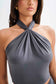 Slinky Halter Crop Top - Charcoal