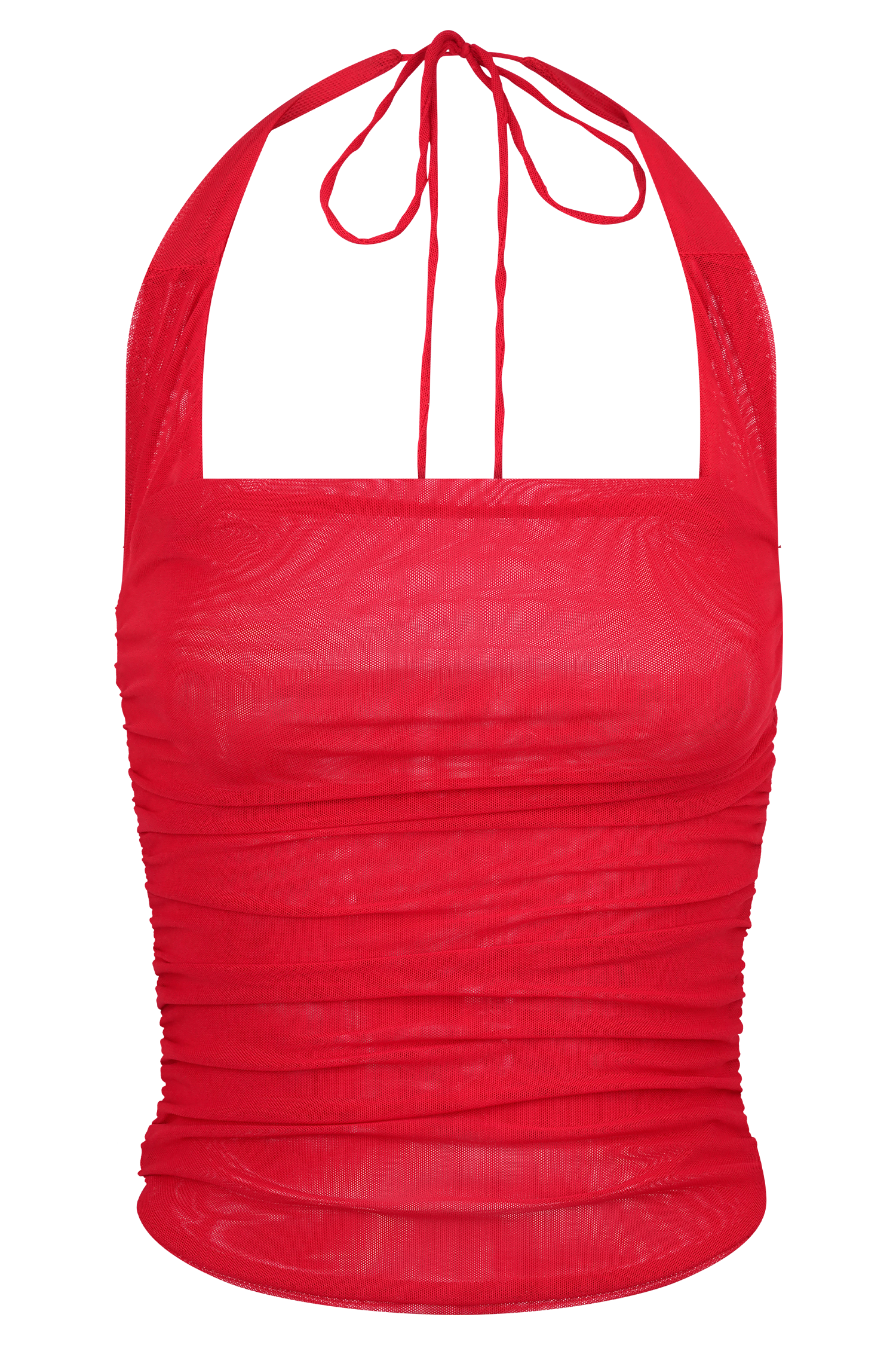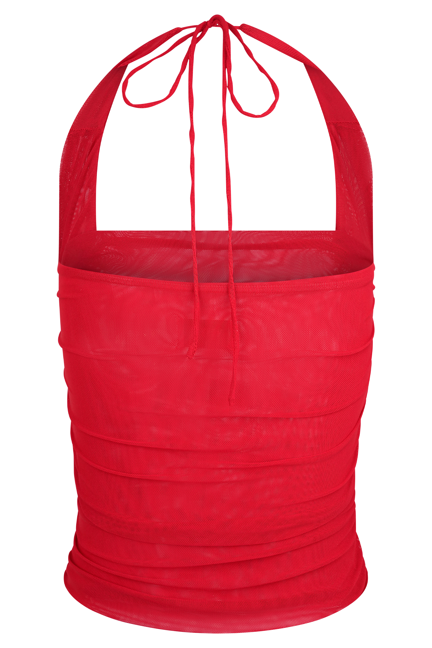 Introducing the BROOKLYN Mesh Crop Top, a chic fusion of style and sensuality. Featuring a wide scoop neckline, this top beautifully frames the neckline, while the dolphin hem shape adds a touch of playful movement. The ruched waist enhances your curves, creating a flattering silhouette, and the open back with a delicate tie detail lends an unexpected yet elegant twist. Crafted from double-layered mesh fabric for a semi-sheer look, the cropped length pairs perfectly with high-waisted pieces. For a seamless, head-turning ensemble, style it with the Arna Mesh Maxi Skirt for a sophisticated and coordinated finish.