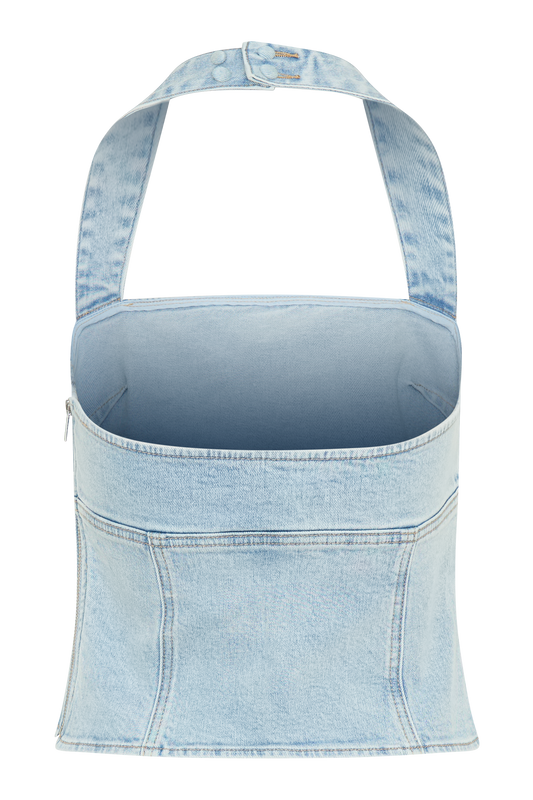 The CAITLIN Mid Rise Denim Jeans offer a modern take on classic denim, designed for both style and comfort. With a flattering mid-rise waist and a sleek, straight-leg fit, these jeans elongate the legs while maintaining a relaxed silhouette. The fly front closure ensures a secure fit, while the front and back pockets add both functionality and detail. Finished with a waistband-less design for a smooth, contemporary feel, these jeans are perfect for elevating your everyday casual look. Pair with the Dayna Denim Halter Top for a complete, effortlessly chic ensemble.