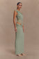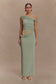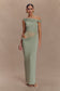 The CALLEN One Shoulder Slinky Maxi Dress is designed to make an entrance. Featuring an asymmetrical neckline with a twisted shoulder detail, this statement silhouette is balanced by a gathered bodice and sheer mesh waist panel that subtly reveals while sculpting the figure. A draped skirt overlay flows into a fishtail hem, creating soft movement with every step. Fully lined for a smooth finish, this dress is the perfect blend of modern drama and timeless elegance—made for evenings that call for something unforgettable.