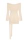 Off Shoulder Tie Knit Mini Dress - Cream Marle
