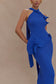 Turn heads in the CAPRICE Halter Knit Maxi Dress, a striking silhouette that flows with every step. Featuring a unique twisted halter neckline with an attached scarf detail, this dress brings a sense of drama and elegance to any occasion. The front and back wripple paneling sculpt the body, complemented by a fishtail shape and softly rippled hem for a fluid finish. Unlined for a lightweight feel, this dress is your go-to for elevated evenings and beyond.