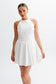 Presenting the CAROLINA Cotton Halter Mini Dress, a delightful blend of style and comfort. Featuring a halter neckline that accentuates your shoulders with elegance, this dress boasts princess seam lines for a flattering fit. The cross back straps add a touch of charm, while the open lower neck enhances its allure. With an elastic back waist, it offers a comfortable and adjustable fit. The mini length and gathered skirt create a playful silhouette that's perfect for any occasion. Lined for added comfort, and with a side zipper for easy wear, this dress is as practical as it is stylish. Whether you're heading to a brunch or a garden party, the Carolina ensures you look effortlessly chic.