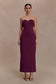 Folded Strapless Crepe Midi Dress - Wine
