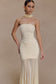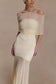Slinky And Mesh Off Shoulder Maxi Dress - Ivory
