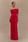 Slinky And Mesh Off Shoulder Maxi Dress - Ruby
