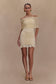 Slinky And Mesh Off Shoulder Mini Dress - Ivory