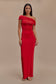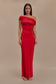 Off Shoulder Slinky Maxi Dress - Red