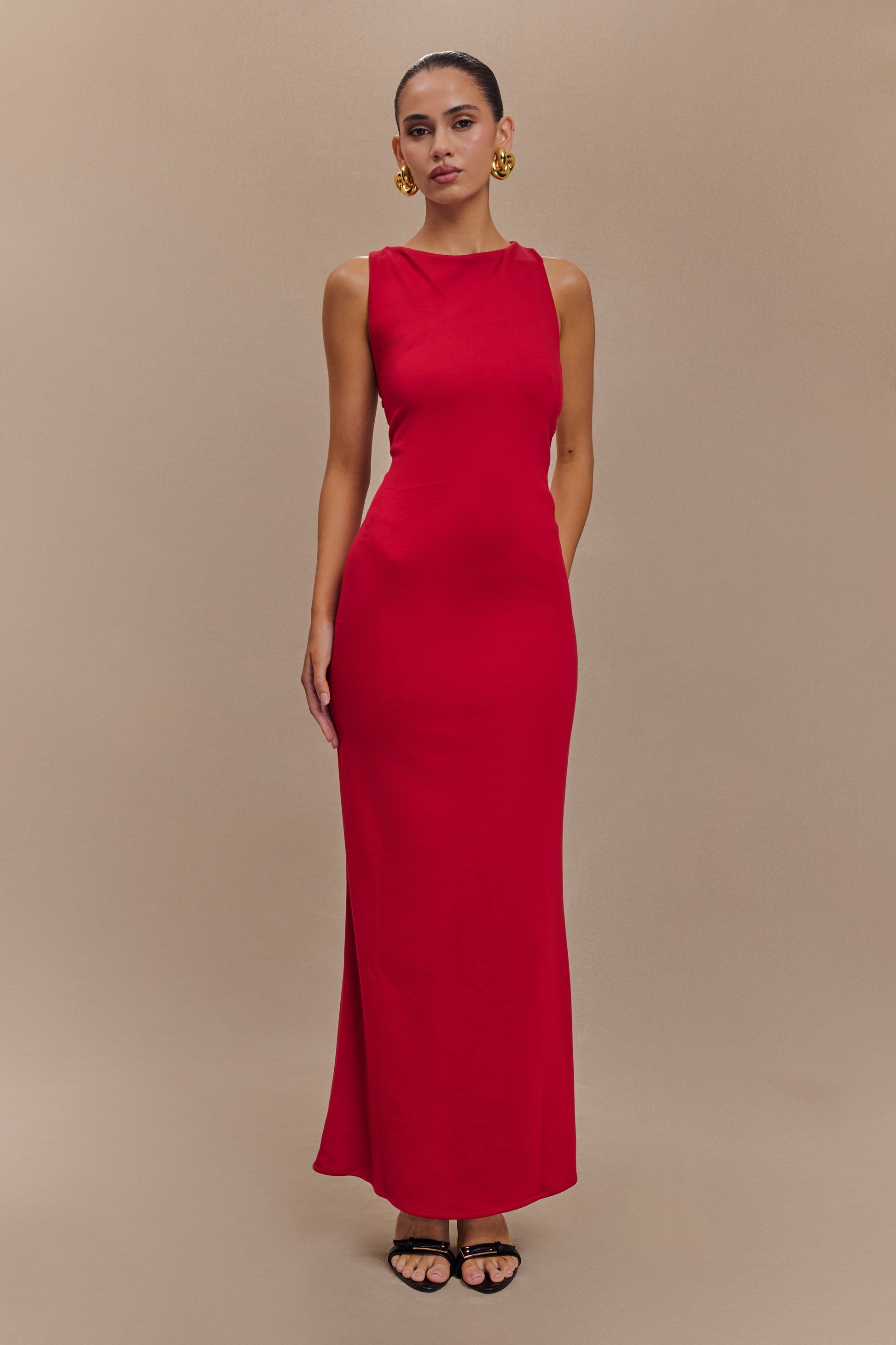 Asymmetrical Scuba Jersey Midi Dress - Ruby