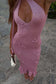Floral Metallic Knit Maxi Dress - Pink