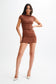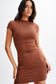 The CERSEI Ruched Cap Sleeve Mini Dress is a chic and stylish addition to any wardrobe. It features an asymmetrical neckline and short sleeves, creating a modern and flattering silhouette. The dress is designed with ruching at the waist and neckline, adding texture and elegance. Made from a stretchy fabric, it ensures a comfortable fit while accentuating your figure. The mini length makes it perfect for a night out or any special occasion. Elevate your fashion game with the Cersei Ruched Cap Sleeve Mini Dress.