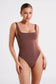 Recycled Nylon Scoop Neck Bodysuit - Mocha
