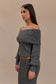 Off Shoulder Knit Long Sleeve Top - Charcoal Marle