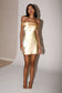 The CHER is a strapless satin dress, crafted in a smooth MESHKI blend fabrication. With an off-shoulder design and a mini-length fit, it’s made to be your new go-to for day or night events. Dress it up by pairing with the Fleur Ankle Strap Heels or keep things casual with flats or sneakers.