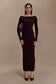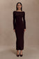 Merino Wool Ribbed Long Sleeve Maxi Dress - Deep Chocolate