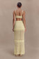The COLEENE Pointelle Knit Maxi Skirt brings soft femininity to a streamlined silhouette. Designed with a high-waisted, elasticated waistband, it offers a comfortable yet flattering fit that elongates the frame. Intricate pointelle knit detailing is finished with scalloped edges for a romantic touch, while the leg split adds movement and subtle allure. Unlined for a lightweight, breathable feel, this maxi-length skirt is an elevated knit essential — perfect for warm-weather styling or layered looks.