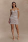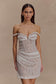 The CONNIE Beaded Bodycon Mini Dress is crafted for statement-making elegance. Designed with a V-detail neckline and versatile multi-wear straps—styled on or off the shoulder—it offers endless ways to make it your own. Gathering at the bust adds softness, while a boned waist panel sculpts the silhouette above a draped mini skirt. Cut from pearl-beaded fabrication with a semi-sheer finish and fully lined for comfort, Connie is your show-stopping choice for evenings that call for shimmer and sophistication.
