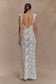 The CORNELIA Embroidered Knit Maxi Dress is a statement in delicate detail and feminine allure. Featuring a plunging V front neckline with an elegant strap detail and a low open back, this sheer knit silhouette is adorned with intricate floral embroidery throughout. A 3D flower appliqué on the shoulder adds a soft sculptural touch, while the fishtail hem creates graceful movement. Unlined for an ethereal, barely-there feel, this dress is made for moonlit events, garden soirées, and unforgettable entrances.