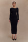 The CULVER Draped Twist Knit Maxi Dress is a refined statement of modern sophistication. Designed with a striking twisted neckline, this fitted silhouette effortlessly enhances your figure while offering a sleek, contemporary edge. The long sleeves balance the form-fitting design, while the midi length adds a touch of understated allure. Crafted from soft, unlined knit for a lightweight feel, this dress is perfect for both daytime polish and evening refinement.