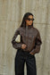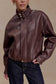 Faux Leather Bomber Jacket - Dark Chocolate