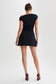 We designed the DAKODA Slinky Off Shoulder Mini Dress to feel effortlessly cool. The off the shoulder neckline paired with the ruching fabrication flatters your form, while the mini length is perfect for dressing up with heels or the Torri Satin Diamante Mules.