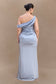 Off Shoulder Satin Maxi Dress - Frosted Blue