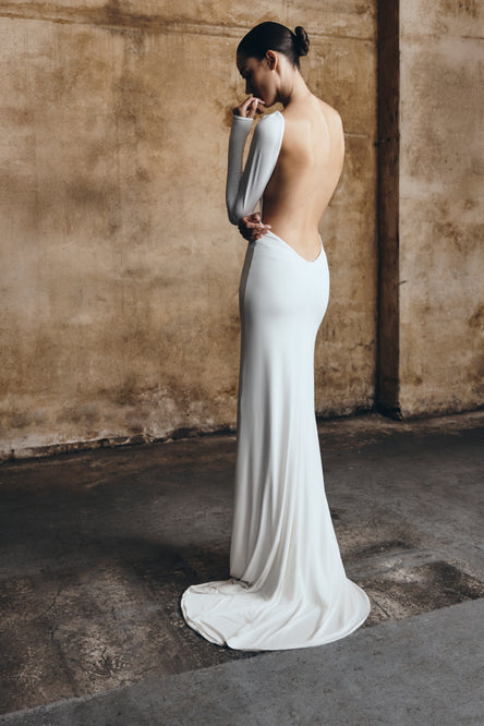 The DAVINA Velvet And Mesh Maxi Dress merges texture and form for a striking after-dark statement. Designed with a high neckline and long sleeves, it’s detailed with velvet and mesh cut-outs that trace the silhouette with precision. The bodycon fit sculpts the frame, while a back leg opening adds subtle movement. Partially lined for balance between coverage and allure, this dress embodies modern sensuality through sleek, structured design.