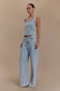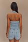 The DAYNA Denim Halter Top is a sleek, structured take on denim that’s perfect for day or night. Featuring a halter neckline and a fitted silhouette, this top boasts bust and princess panel seams for a contoured fit. The side zip makes for easy wear, while grip tape along the neckline keeps it comfortably in place. Style it with high-waisted jeans or the matching Caitlin Mid Rise Denim Flare Jeans for a statement look that’s effortlessly cool.