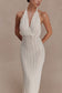 The DEELIAH Halterneck Crochet Maxi Dress is a striking expression of modern resort dressing. Designed with an adjustable halter neckline and a deep V front, it frames the body with confident femininity. The open-back silhouette enhances the relaxed, sun-soaked feel, while the crochet fabrication adds handcrafted texture throughout. Unlined for a lightweight, breathable finish, this maxi-length dress is made to move seamlessly from beachside moments to elevated evenings.