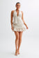 Effortlessly chic and feminine, the DELFINA Linen Halter Top adds a touch of sophistication to your summer wardrobe. With a halter neckline and a V neckline, this top elegantly frames your collarbone while offering a flattering silhouette. The front panel detailing adds a subtle yet stylish touch, complemented by a frill hem that adds a playful and whimsical vibe. The low back design adds a hint of allure and showcases a hint of skin, making it perfect for warm days and evenings. Fully lined for comfort and quality, the Delfina Linen Halter Top is a versatile and must-have piece that transitions seamlessly from casual outings to more dressed-up occasions with ease. Pair with the matching Delfina Linen Mini Skirt With Ruffle to complete the look.