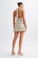 The DELFINA Linen Mini Skirt With Ruffle is a stylish and versatile piece that will elevate your summer wardrobe. With its high-waisted design, it effortlessly accentuates your waistline and creates a flattering silhouette. The elastic waist ensures a comfortable and secure fit, making it perfect for all-day wear. The A-line shape adds a touch of femininity and elegance, while the hem frill adds a playful and flirty detail. Designed to be unlined, this skirt is lightweight and breathable, making it ideal for warmer weather. Whether dressed up or down, the Delfina Linen Mini Skirt With Ruffle is a must-have for any fashion-forward individual looking to add a chic and trendy piece to their collection. Pair with the matching Delfina Linen Halter Top to complete the look.