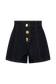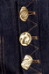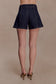 The DEMI High Waisted Denim Shorts deliver a polished take on a warm-weather staple. Designed with a high-rise waist and an A-line silhouette, they flatter the figure while offering effortless ease. A button-front fly with custom decorative buttons adds a refined point of interest, complemented by soft front pleats that enhance shape and movement. Finished with functional back pockets, these shorts balance structure and wearability — perfect for elevated everyday styling.