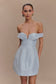 Off Shoulders Mini Dress - Powder Baby Blue