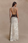 Turn heads in the DINAH Lace and Satin Maxi Dress, a romantic silhouette that blends soft textures with sultry details. Featuring a halter tie V neckline and softly gathered bust, this dress flows into a sheer lace body that skims the figure with ease. The low back adds a touch of drama, while the maxi length and invisible zip create a seamless finish. Partially lined for subtle coverage, this dress is the epitome of slip-on elegance with an irresistible edge.