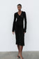 Lace Long Sleeve Midi Dress - Black