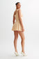 The DONNA Cotton Ruched Mini Dress encapsulates a blend of classic femininity and modern flair, designed to create a captivating presence at any social gathering. This dress features a square neckline with a delicate lace trim that adds a touch of vintage charm and romantic allure. A functional front tie draws attention to the fitted bodice, which is beautifully complemented by ruched detailing under the bust and contour panel seams that sculpt and define the silhouette. The pleated A-line skirt flares out gracefully, providing movement and a playful edge to the mini length design. Fully lined for comfort and modesty, the Donna Dress is an impeccable choice for those who appreciate elegance with a modern twist, perfect for evenings out, special occasions, or just a stylish day around town.