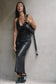 The DORI is a sleeveless midi dress with a low, open back and plunging neckline. A large rose in self fabric is secured to the centre front, adding feminine flair to the dress’s natural sophisticated silhouette. The cinched waist works with the straight-cut skirt with back hem vent to create a flattering hourglass effect. Shoulder straps taper into functional self-tie fabric straps that can be tied at the back of the neck. Finish with pointed heels like Dasha Sling Back Heels.