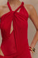 Knotted Mesh Maxi Dress - Red