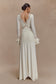 The ELECTRA Slinky Lace Maxi Dress blends sultry detail with fluid design. Featuring a deep V lace neckline and fitted silhouette, this dress hugs the body while lace cut-outs add delicate intrigue. A cascading front-side tie drape brings graceful movement, while flared layered sleeves evoke a sense of vintage romance. Partially lined for contrast and comfort, this dress is designed to turn heads—whether it’s a moonlit dinner or a statement-making soirée.