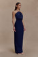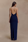 The ELINA Satin Necklace Maxi Dress is a statement silhouette defined by fluid textures and refined detailing. Designed with a draped halter neckline secured by a chain necklace closure, it blends softness with an edge of modern polish. A contrast satin bodice falls into a crepe skirt base, cinched at the waist to sculpt the frame. Fully lined for comfort, this dress is completed with a centre back invisible zip and split for ease of movement. The result: a piece that feels as striking as it looks.