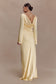 Long Sleeve Cowl Lace And Satin Maxi Dress - Lemon