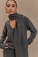 V Neck Knit Jumper With Scarf - Charcoal Marle