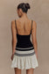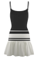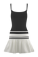 The ELLISON Contrast Knit Mini Dress is your go-to for flirty, fun styling with a modern twist. Featuring a scoop neckline and striking back cross-strap detail, this fitted silhouette hugs the body before flaring into a frilled lower skirt. Bold contrast stripe detailing adds a graphic edge, while the unlined knit keeps it light, breathable, and ready for warm-weather days. this dress is perfect for weekend plans, sunlit strolls, and everything in between.