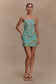 Hand Beaded Mini Dress - Blue Swirl Print