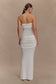 The ELORA Strapless Knit Maxi Dress is your warm-weather essential for effortless allure. Designed in a semi-sheer knit with a sculpted bodycon silhouette, Elora features a softly gathered bust overlay and matching gathered hip panel to enhance and flatter your natural shape. The strapless neckline keeps things clean and modern, while the maxi length brings easy elegance. Whether you're headed to a long lunch or watching the sunset over the sea, this dress brings quiet confidence to every moment.